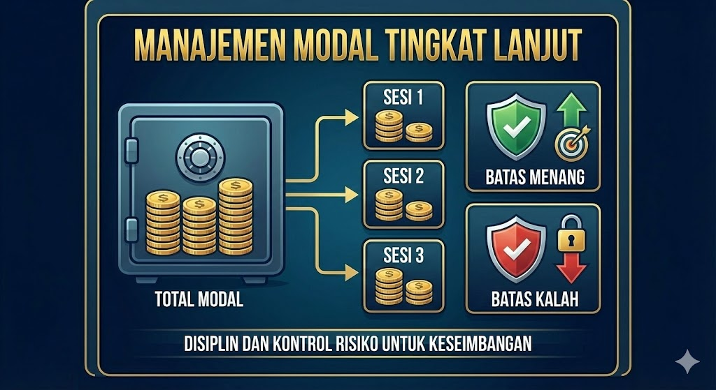 Teknik profesional selalu disertai pengelolaan modal yang disiplin. Modal dibagi ke dalam beberapa sesi bermain agar risiko kerugian dapat dikontrol. Pemain serius juga menetapkan batas menang dan kalah secara ketat untuk menjaga keseimbangan permainan.