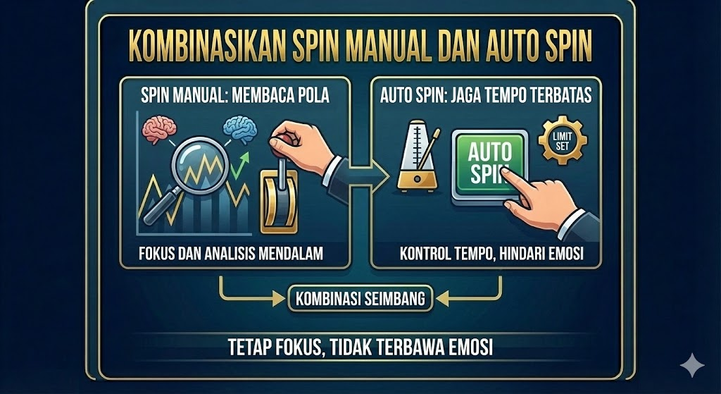 Teknik profesional tidak bergantung pada satu metode spin saja. Spin manual digunakan untuk membaca pola, sementara auto spin dimanfaatkan secara terbatas untuk menjaga tempo permainan. Kombinasi ini membantu pemain tetap fokus dan tidak terbawa emosi.