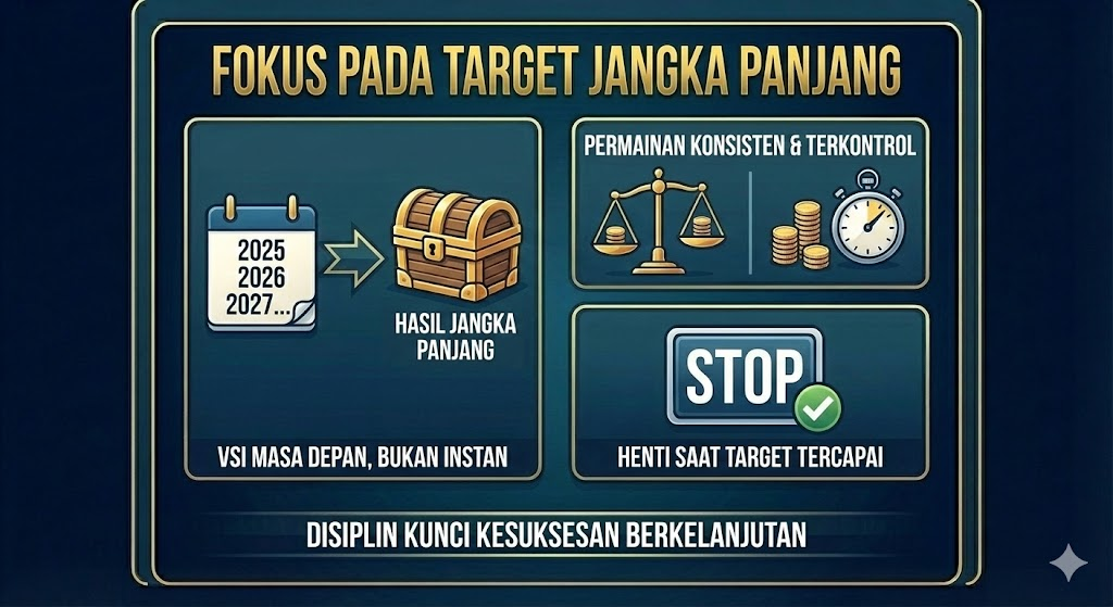 Pemain serius tidak mengejar kemenangan instan. Fokus utama adalah hasil jangka panjang dengan bermain konsisten dan terkontrol. Ketika target profit tercapai, mereka memilih berhenti dan melanjutkan permainan di sesi berikutnya.